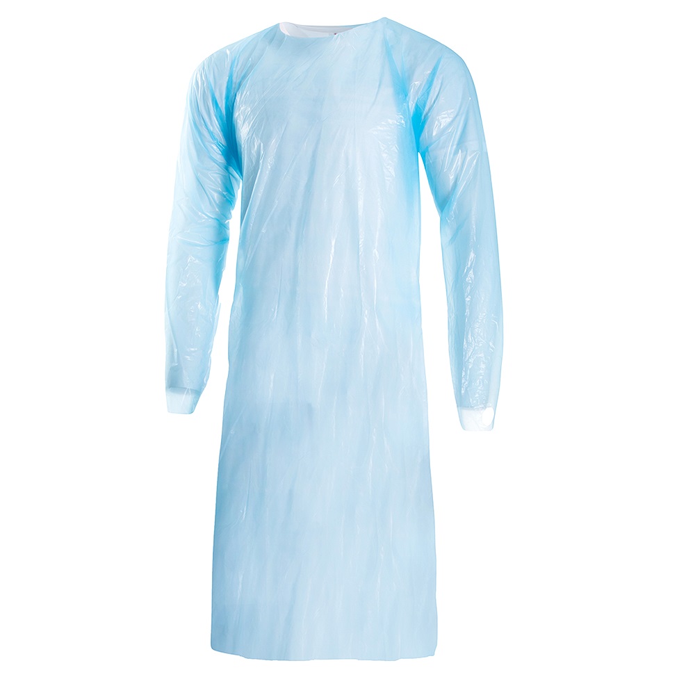 Fartuch z długim rękawem, wykonany z mocnego polietylenu CPE w rozmiarze 120×90 cm, z otworem na kciuk zabezpieczającym przed zsuwaniem się rękawa. Zastosowanie: przemysł spożywczy, medyczny, gastronomiczny i inne, w celu ochrony odzieży przez zanieczyszczeniami i płynami. Pakowanie: opakowanie 25 szt., karton 100 szt.