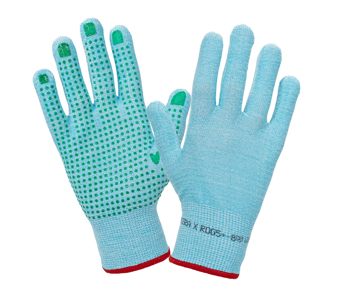 Rękawice antyprzecięciowe wykonane z poliamidu, poliestru, spandeksu oraz włókna szklanego i włókna technicznego hppe z dodatkowym nakropieniem PVC poprawiającym chwytność. Idealne do prac manualnych. Bardzo dobre czucie trzymanego przedmiotu. Dobrze dopasowują się do kształtu dłoni. Rozciągliwe i elastyczne. Zakończone ściągaczem. CE. EN388:2016 4X43C. Opakowanie: karton 12/300. Kolor: niebieski. Dostępne w rozmiarach: 7, 8, 9, 10.