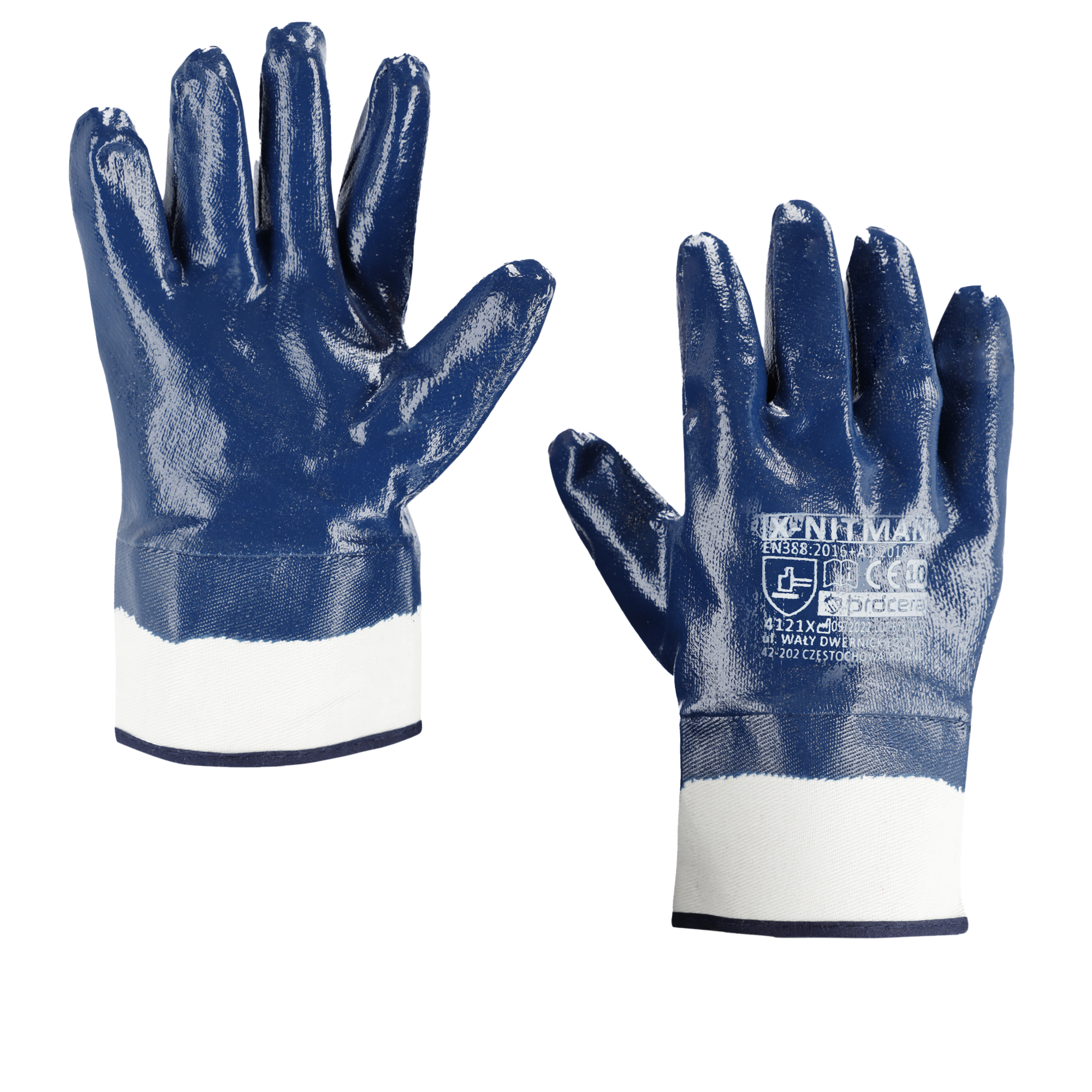 Rękawice X-NITMAN wykonane z dzianiny bawełnianej, powlekane w całości nitrylem, zakończone usztywnianym mankietem. Podwyższona odporność na oleje oraz smary. CE EN 388. Opakowanie: karton 12/120. Kolor:niebieski